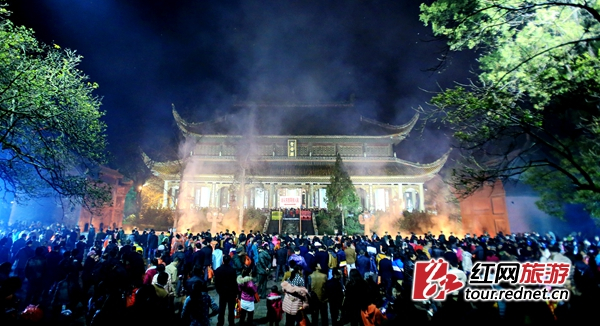 2、祝融殿:1月27日(农历大年三十),南岳中心景区祝融殿开门时间为晚23:00。