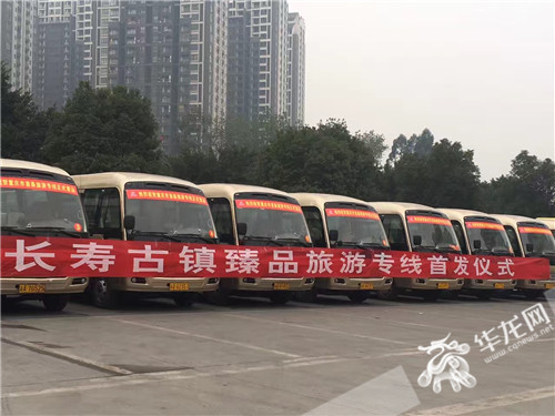 重庆龙头寺旅游集散中心至长寿菩提古镇臻品旅游专线班车正式开班。长寿区旅游局供图 华龙网发温馨提示,春节期间人流量大,想要乘专线到长寿菩提古镇旅游的市民和游客最好提前订票。据悉,目前市民和游客可直接到售票点购票,也可在爱游73、携程网、途牛等电商平台购票。
