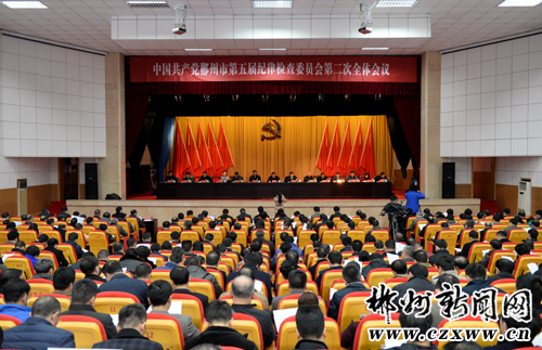 1月22日,中国共产党郴州市第五届纪律检查委员会第二次全体会议召开。图为大会会场。 (记者 陈建平 摄)