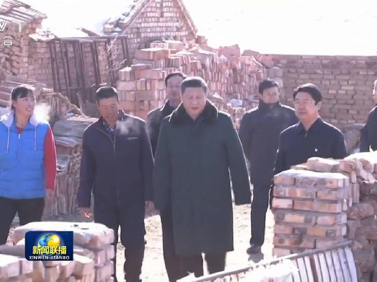 离开光伏电站,习近平先后走进困难群众徐万、徐学海、徐海成家看望。他察看住房、生活设施、年货准备情况,同每家人算收入支出账,对照扶贫手册询问扶贫措施落实得怎么样,家里还有哪些实际困难。