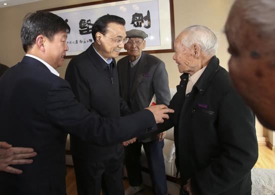 老校友们均已年逾九旬,最年长者已经97岁。总理握着他们的手动情地称呼“老学长”,并祝福这些白发苍苍的老人“健康长寿”。
