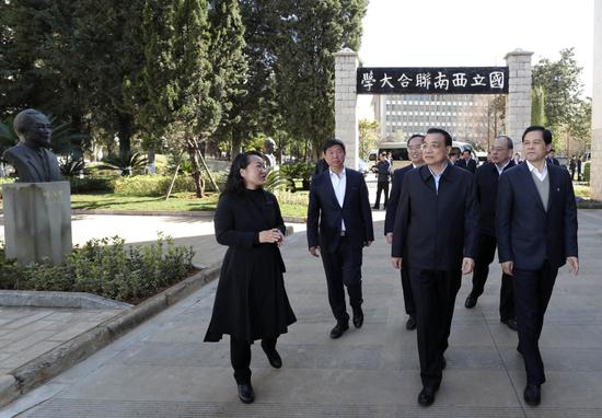 “你们在这个学校读书很幸运,很多学校都没有这样的特殊条件。”临别前,李克强对闻讯赶来的云南师范大学学生说,“希望你们在这里汲取前辈们的精神养分,传承刚毅坚卓的文化品格,将西南联大的精神发扬光大。”(记者 杨芳)