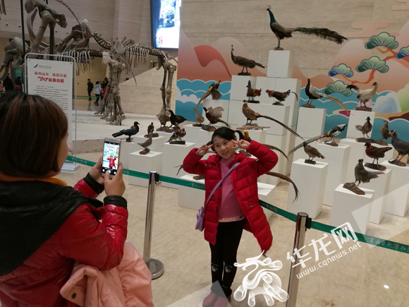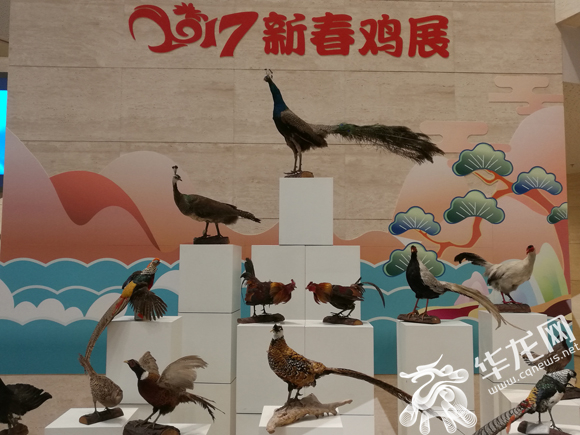 记者在重庆自然博物馆看到,在该馆中央大厅的显著位置设有多个展台,上面摆着各式各样、五彩斑斓的鸡标本。该展览主题名为“2017新春鸡展”,前来参观的市民络绎不绝,截至下午5点闭馆,当天游客突破8600人。