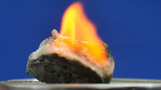 可燃冰分布于深海沉积物或陆域永久冻土中,是由天然气与水在高压低温条件下形成的类冰状结晶物质,燃烧后仅会生成少量的二氧化碳和水,污染比煤、石油、天然气小很多,但能量高出十倍。