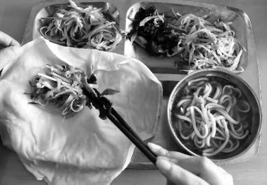 狂舞闪电:面条泡饼。兰小肥:用春饼卷着面条,卷着饺子,也可以卷着萝卜一起吃。