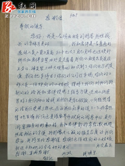 游客写信感谢游客中心 “张家界式”服务温暖人心