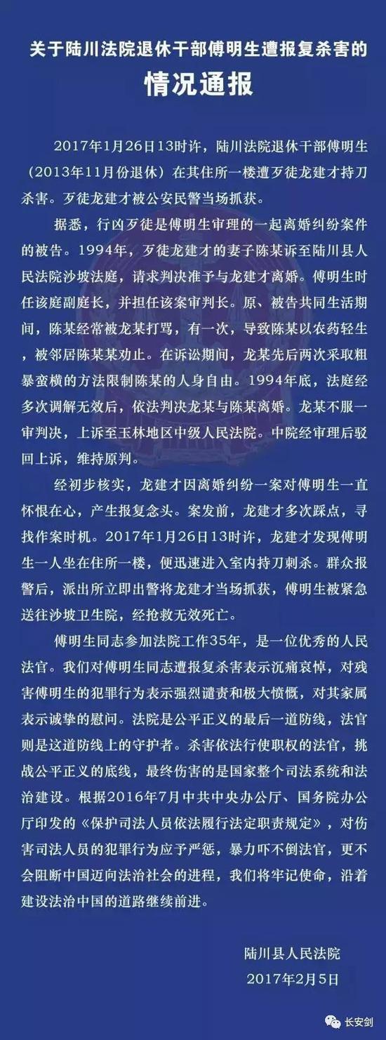 今天,长安君想借法官、网友和中央文件的口,对“陆川法官被杀”一事,说三句话——