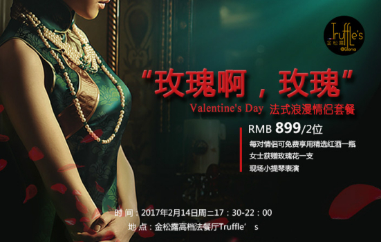 除了美味的西餐,金松露法餐厅也在这个浪漫的日子里推出了“玫瑰啊,玫瑰”法式浪漫情侣套餐。这里不仅有精心烹制的法式料理,还有红酒、玫瑰、小提琴和顶级澳洲牛扒,相约金松露,899元/2位,带着爱人与美食来一场浪漫邂逅,体验一场无与伦比的舌尖盛宴。