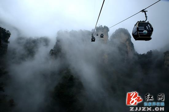 在云海中安全穿行的张家界天子山索道(吴勇兵摄)