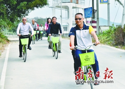 在考察中,一行人结合骑车游玩的感受,提出了一些需要完善的地方,比如绿化、石凳及洗手间等配套设施仍需进一步完善及增设,环境卫生仍需加强保洁等。