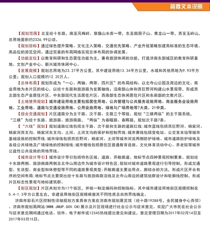 彩石片区规划范围是北至经十东路、南至凤梅岭、狼猫山水库一带,东至南围子山、青龙山一带,西至玉岭山,总用地面积约2326.99公顷。