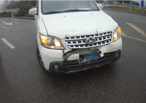 2月12日下午18时20分,一辆白色越野车行驶在渝北区悦城路上,突然为避免追尾一辆摩托车而撞上路边的石墩上,导致车辆正前方受损,保险杠脱落。渝北分局交巡警支队悦来大队民警接到报警,迅速到达现场处置。