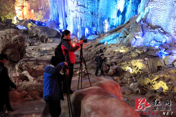 惹迷洞内千姿百态的洞景让采风团拿起手中相机拍个不停