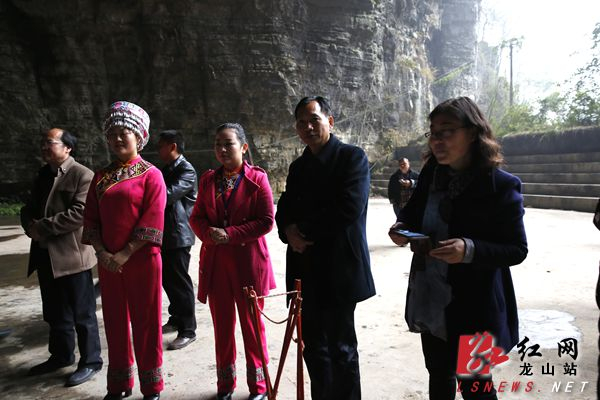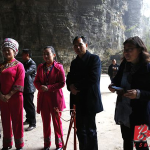 采风人员一行先后来到了乌龙山大峡谷的惹迷洞、鲢鱼洞进行采风,随后还在飞虎洞中观赏了土家族原生态的打溜子、毛古斯、咚咚喹、三棒鼓等非遗文化活动展示。