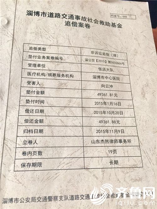 淄博交警垫付交通救助基金2000多万元 成功追偿260万