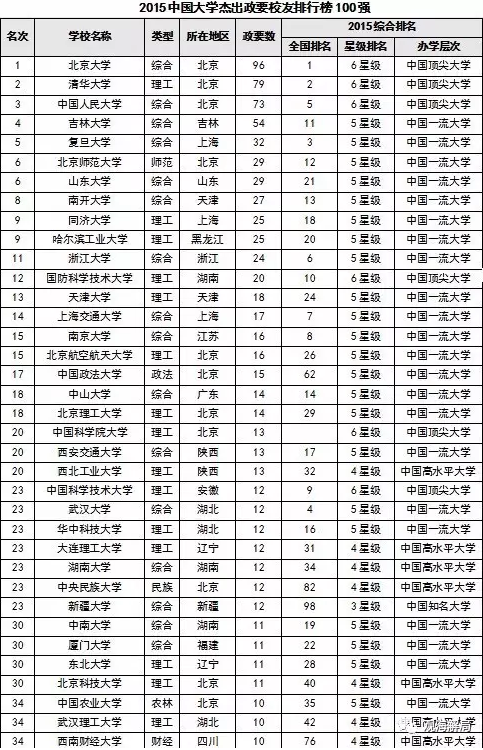 政要排行榜 北大第一