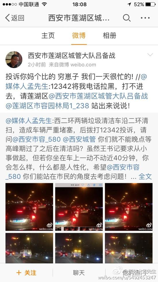 西安莲湖城管回应队员微博辱骂网友:协管被冒名