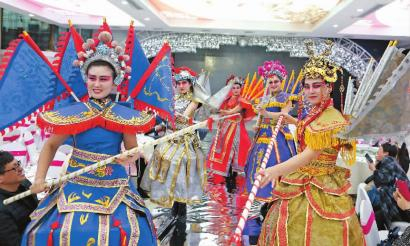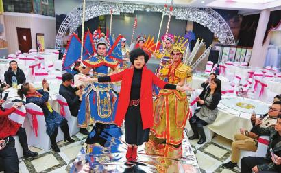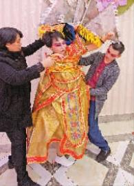 4.纸制的戏服穿起来很麻烦,需要几个人帮忙完成