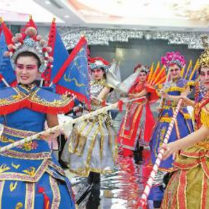 3月6日11时许,长春春城大街某酒店内,五位模特身穿“杨门女将穆桂英挂帅”的戏服正在T台上表演走秀。让人意想不到的是,这些模特身穿的服装都是用纸做出来的。为了迎接“三八”国际劳动妇女节,环保人士、70后的杨丝丝用一周时间制作了这些特色服装,除了戏服还有婚纱等作品,展示出“巾帼不让须眉”女人智慧和刚强的另一面。服装的主料是各种纸张,辅料用的是纸壳、塑料等。