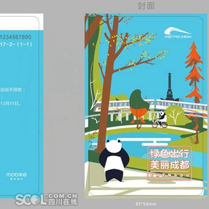本次主题纪念卡整体设计充满趣味,以熊猫在湖边的骑单车的场景,表现成都市民对于绿色、便利出行的喜爱和向往,平面设计风格整体清新、自然,标志着“地铁+单车”时代的来临,倡导市民绿色低碳的出行新方式。