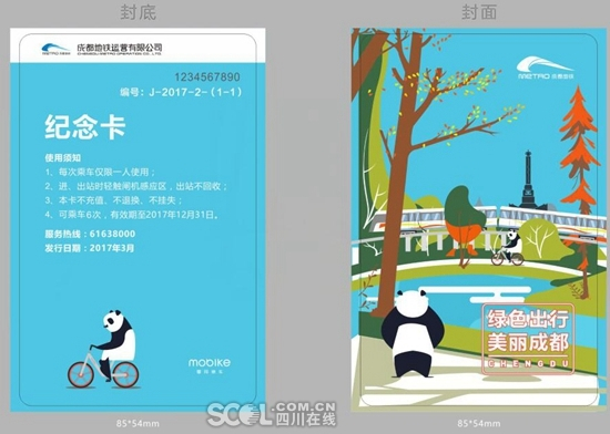 成都推出“地铁+共享单车”纪念卡 30元可乘地铁6次