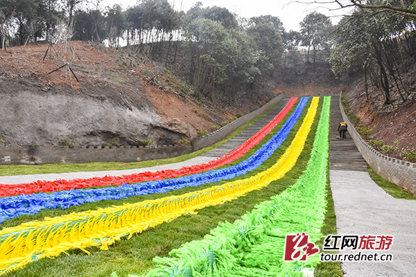 浔龙河樱花谷内有多项儿童游乐设施,图为滑草项目。