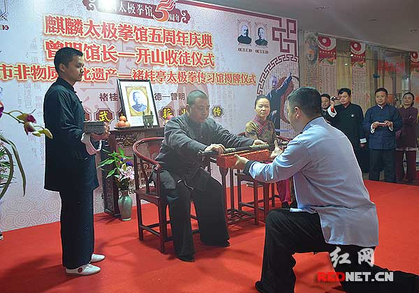这次拜师的8名徒弟,都是经过曾明对他们3年的认真考核,同意收入门下,并于3月12日在麒麟太极拳馆5周年庆典活动当日举行正式的拜师仪式,成为曾明的开山徒弟。