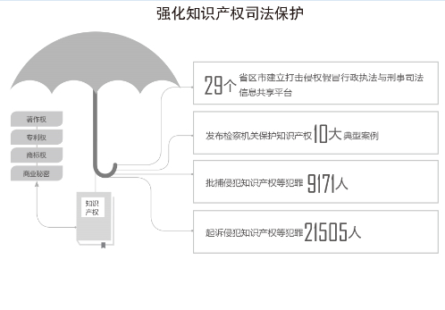 正义网北京3月12日电(记者 程振楠)3月12日上午,最高人民检察院检察长曹建明在十二届全国人大五次会议第三次全体会议上作最高人民检察院工作报告时说,2016年,检察机关制定保障和促进科技创新“15条意见”。突出惩治侵犯知识产权等犯罪,起诉21505人。湖北、云南、宁夏等29个省区市建立打击侵权假冒行政执法与刑事司法信息共享平台。加强对科技创新法律政策研究,准确把握科研人员合法兼职收入与索贿受贿、知识产权收益与贪污受贿等“五个界限”。