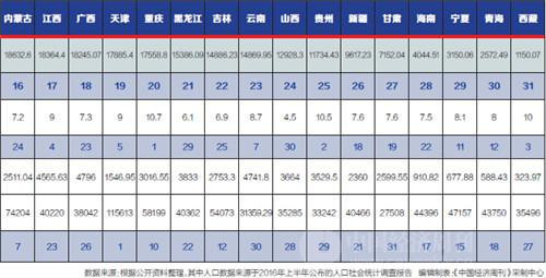 31个省份公布的2016年GDP总量,展示出了不一样的区域格局。