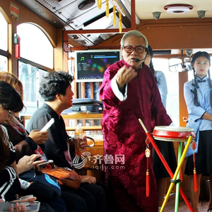 济南游777路“铛铛车”上的民间艺术表演(资料图)
