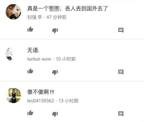 目前该视频虽然在微博上被删除了,但YouTube上却已经传开。参考消息网-锐参考注意到,该视频目前在YouTube上被浏览3000多次,但无1人点赞,9人为视频打了差评。看看YoTube上的留言(留言者多为华人)是怎么说的——