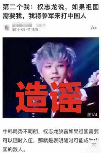 类似行为的还有一些营销号。不同的是,这次它们的关注点在中韩明星身上,检视明星们的一举一动,甚至不惜造谣“蹭热度”。比如某韩国歌星只不过回答了一个“何时入伍”的问题,就被一营销号写成了其“准备攻打中国”的言论: