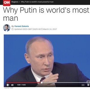 【环球时报综合报道】“普京是否运用他的权力让特朗普当选了美国总统?请看今晚9点CNN特别节目”——美国有线电视新闻网(CNN)13日在推特上打出的这则广告吸引了全球目光,这是该台节目主持人兼外交政策专家扎卡利亚最新制作的一部纪录片:《为什么说普京是世界上最有权势的男人》。自称普京“粉丝”的美国总统特朗普上任已近两月,俄罗斯人没有等到制裁的取消,却等到这样一部片子,失望的俄媒14日对CNN恶评如潮。