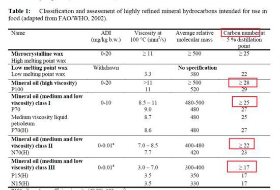 因此,欧盟食品安全局根据这一情况,把这种食品级矿物油又分为了两个大类别,即“高粘度”和“中低粘度”。