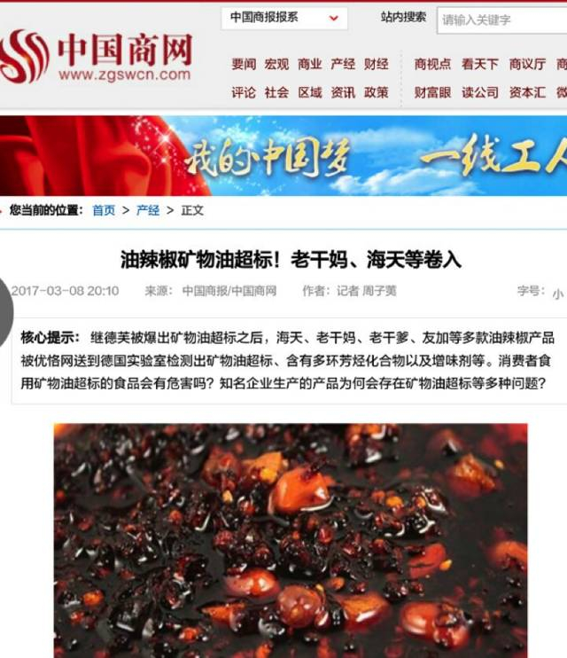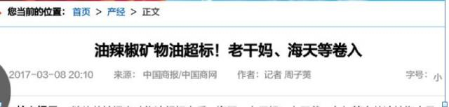 相信大家刚看到上面这张图里的内容时,一定吓坏了吧:“老干妈”油辣椒里居然有“矿物油”?!而且还超标?!这个我们中国人吃了这么多年的产品原来有毒???