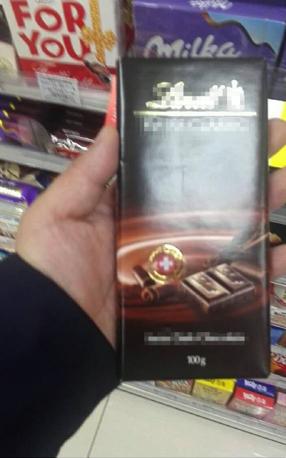 那么,这150g的德芙巧克力又有多大呢?耿直哥去超市专门看了一下,并拍了一款规格在100g的其他品牌的巧克力的照片,给大家感受一下: