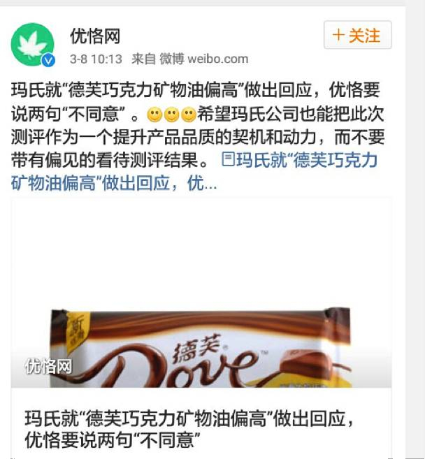 不仅如此,耿直哥经过详细的调查,发现“优恪网”对于德芙巧克力等产品“矿物油超标”的指控,还涉嫌许多严重的偷换概念…。