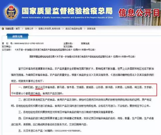 因为,在该局关于日本核辐射问题与日本食品进口的文件中(比如下图这个),他们的表述方式就容易令前来查询政策法规的记者和普通人认为:只要是来自被禁止地区的产品(不论是不是那里生产的),都不能在中国售卖。