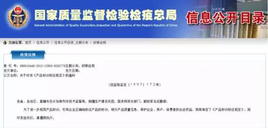 然而,“国家质量监督检验检疫总局”出台的《产品标识标注规定》的第九条却规定: