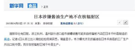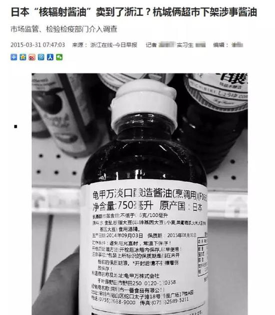 如上图所示,在2015年3月,浙江的一家媒体就爆料说,他们发现在当地超市里售卖的一款进口日本的酱油,其“制造商”一栏中的地址是日本千叶县,而这个地方恰好也在我国禁止进口的日本地区范围之内。