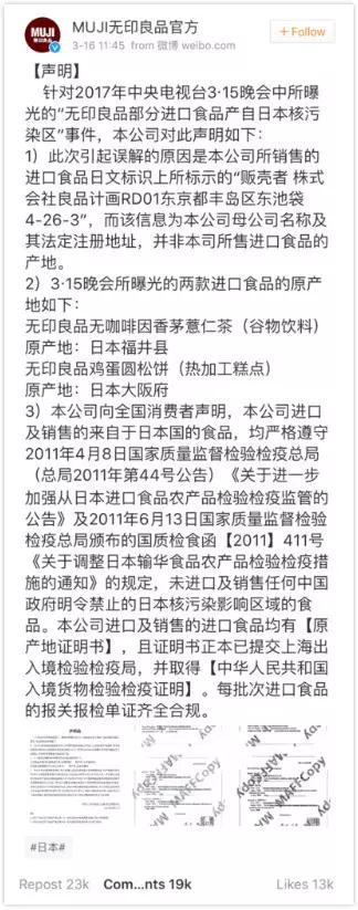 所以,在对于无印良品和永旺的指责上,315晚会确实是闹出了很大的乌龙。