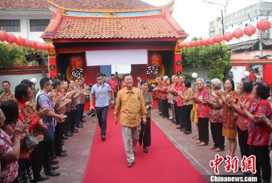 井里汶华人以隆重的礼仪欢迎谢锋大使的到来。 林永传 摄