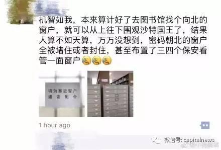 为了一睹沙特王室成员的真容,还有同学另辟蹊径,虽然结果仍然败给了机智的安保人员。