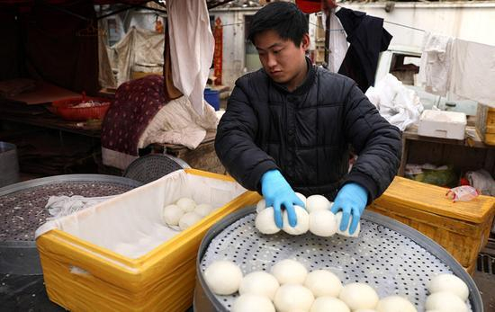 这两天,来自山东威海85后的男孩丁海龙因为卖馒头月入两万在微博上火了起来。丁海龙是山东威海张村莱海市场内一家馒头店的老板,每天能卖出去8000多个馒头,被称为 “馒头哥”。(3月17日 齐鲁网)