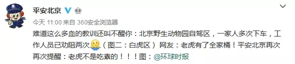连@平安北京 都再次提醒:发出这么多血的教训还叫不醒你!老虎不是吃素的!!↓