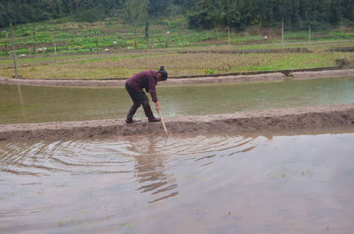 华龙网3月20日15点04分讯(特约通讯员 尹梁宇)“噗通、噗通”,泥巴坠入稻田里发出的声音响彻在乡野田间。3月19日笔者在重庆梁平区七星镇仁安村看到了这样一幅景象,不少村民拿着锄头、犁耙等农具在梯田之间加固田坎,挖深稻田里的鱼槽。