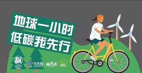 为了迎接“地球一小时”,由华龙网、重庆SM城市广场、ofo共享单车主办的公益骑行活动“地球一小时 低碳我先行”于3月18日在重庆沙坪坝大学城盛大启动。活动公开招募的50名骑行爱好者、公益大使,身着统一着装,以身作则,宣导“地球熄灯一小时”,倡导绿色环保、节约能源的理念。