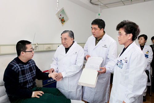 同是张琪的博士学生、黑龙江省中医药科学院消化科主任潘洋向记者说起了一件让她感动落泪的事。就在今年1月4日,张琪冒着刺骨的寒风坚持前来出诊。当他看到第三位患者时,细心的学生们发现老师手抖、出汗,一量体温,竟然高达39度,学生们不顾他还要坚持到结束的要求,急忙送他去诊治,经检查是急性胆囊炎。原来,前一天晚上张琪就感到胃胀不舒服,但想到第二天等他出诊的患者,他就吃了点药,决定扛过去,想坚持出诊。他这种一心为患者的仁医之风感动了在场的每一位学生。