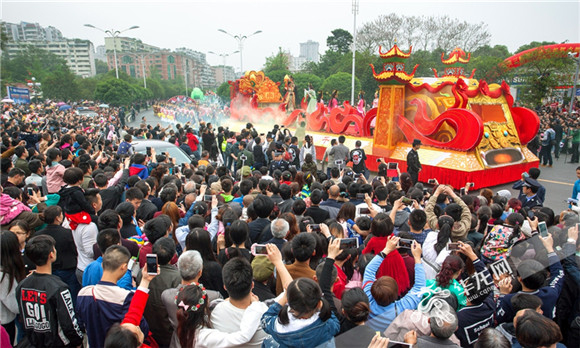 《天子出巡》 陈勇 摄古民居非遗展演,不仅是一场特色民俗文化的饕餮大餐,更是一次非物质文化遗产展演形式创新的大胆尝试。本次非遗展演集中展出最具代表性的非遗项目50个,摒弃了过去只在舞台进行不接地气的弊端,将古色古香的建筑群与非遗民俗自然融合,情在景中,戏在身旁,使人感同身受,达到“形神兼备”的效果。游客不仅欣赏民乐和木偶戏、南国舞狮表演,还能装扮新郎、新娘体验古时结婚民俗,以及参与剪纸、绘面具等,亲身感受非遗文化魅力。而麻辣鸡等特色非遗美食制作工艺也将现场演示,满足游客的“美食梦”。