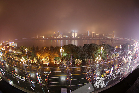 近处的北滨路与对岸沙滨路如同嘉陵江上的金色腰带。记者 李裕锟 摄重庆春天的滨江路,是一条生动的风景画。画中有长江嘉陵春潮起伏的汇流胜景、有春雨深巷卖杏花的生活场面、有除却巫山不是云的浪漫情怀。重庆的繁华与自然在滨江路合二为一——白天这里气象万千,春日巴渝间的山水形胜一览无余;夜晚这里流光溢彩,缓缓而流的一江春水倒映出重庆城市灯光璀璨的发达。